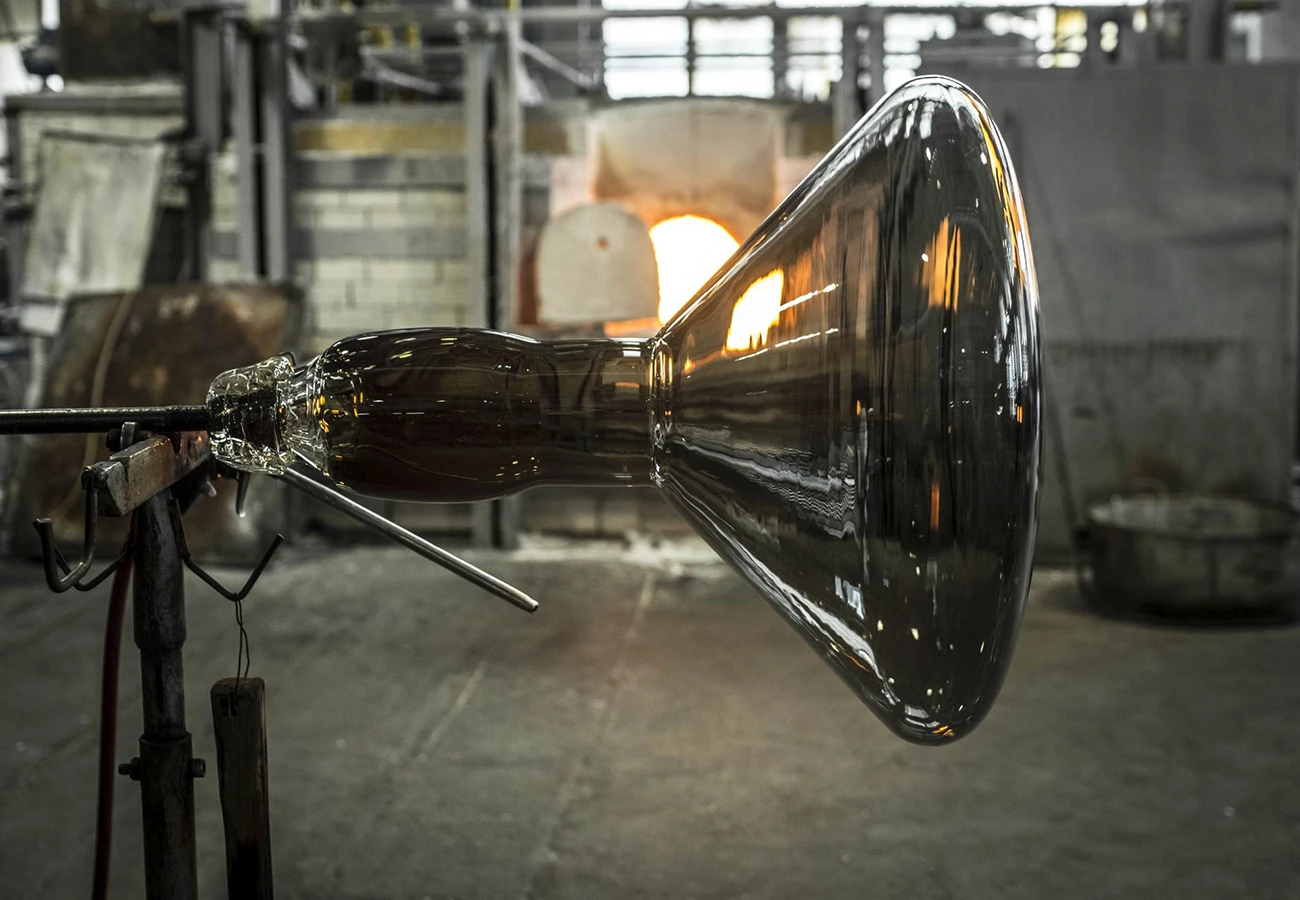 Die Handwerkskunst der böhmischen Glasbläser ist eine Klasse für sich. Bis zu seiner makellosen Fertigstellung arbeiten an jedem Lichtobjekt bis zu 30 Personen. Um Luftblasen im Glas zu vermeiden, muss jeder Handgriff sitzen, und dabei wird das Glas mit einem gleichmässigen Tempo geblasen. Deshalb muss das Lungenvolumen der Glasbläser aussergewöhnlich gross sein. In archaischer Hitze erreicht das geschmolzene Glas eine Temperatur von über 1’400 °C und wird bei 700 °C in die jeweilige Holzform geblasen. Der Hingabe, Handwerkskunst und Arbeitsmoral dieser Glasbläser ist es zu verdanken, dass wunderschöne Leuchten von exzellenter Qualität entstehen.
